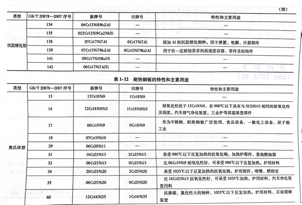耐(nai)熱鋼板的特性和主要用(yong)途見表1-12。