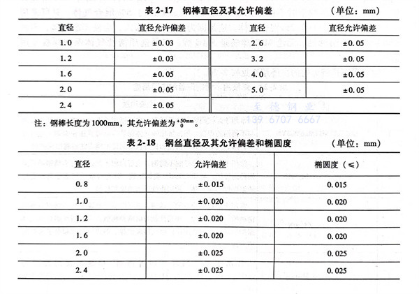 不(bu)銹鋼(gang)(gang)棒(bang)直(zhi)徑(jing)和鋼(gang)(gang)絲盤內徑(jing)均(jun)有一(yi)定要求,分(fen)別(bie)見表(biao)2-17、表(biao)2-18和表(biao)2-19。其中,鋼(gang)(gang)絲直(zhi)徑(jing)和鋼(gang)(gang)絲盤內徑(jing)是氣體保(bao)護焊熔化極焊接(jie)方法提出的特殊要求。鋼(gang)(gang)絲應規整,不(bu)得散亂。