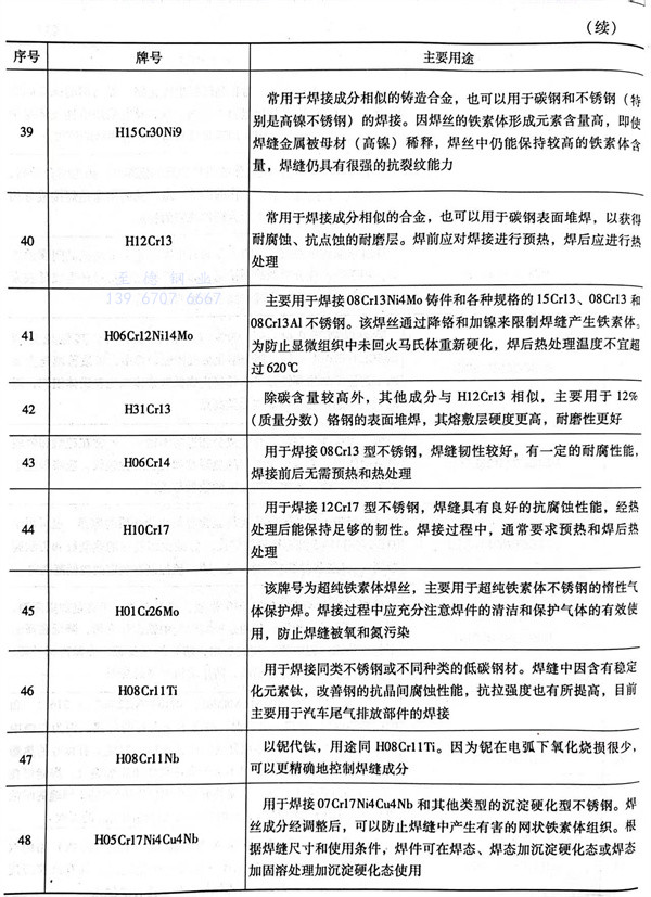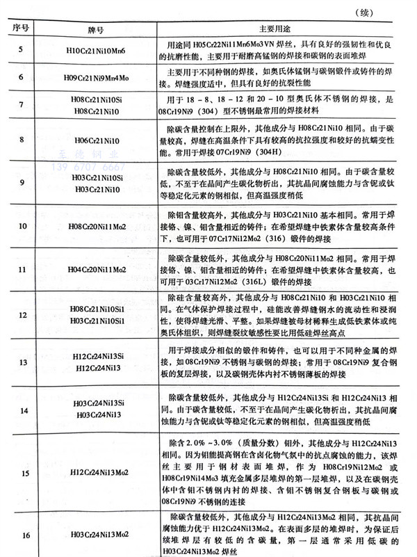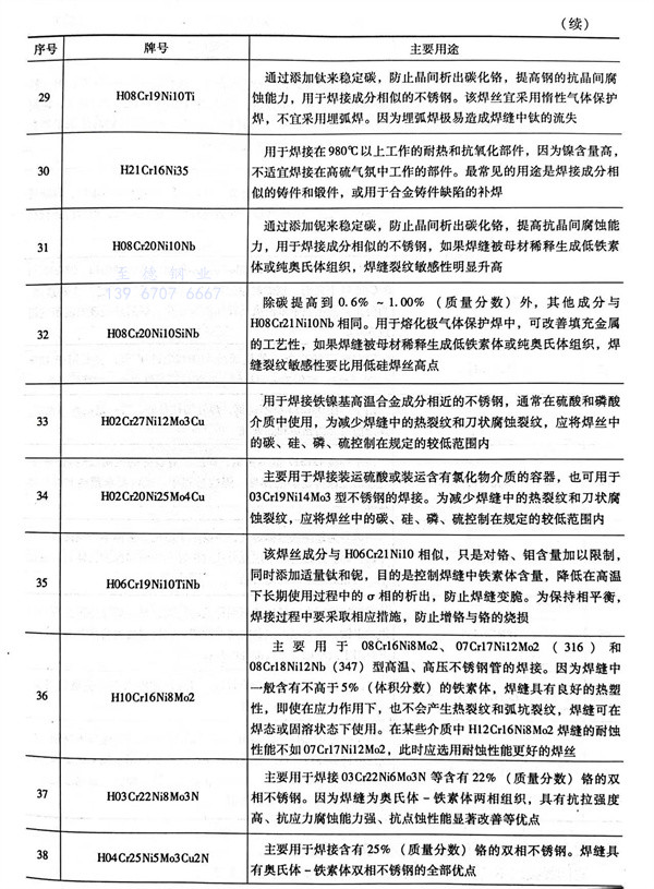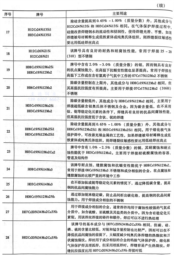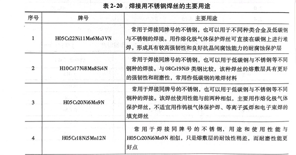 焊接(jie)用不(bu)銹鋼焊絲的主要用途見表2-20。
