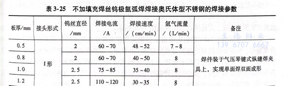 下面介紹一組奧氏體型不(bu)銹(xiu)鋼(gang)鎢極(ji)氬弧焊(han)(不(bu)加(jia)填(tian)充焊(han)絲(si)或加(jia)填(tian)充焊(han)絲(si))用機械操(cao)作(zuo)的焊(han)接參數,見表3-25和表3-26。表3-27為(wei)加(jia)填(tian)充焊(han)絲(si)的手工鎢極(ji)氬弧焊(han)的焊(han)接參數。