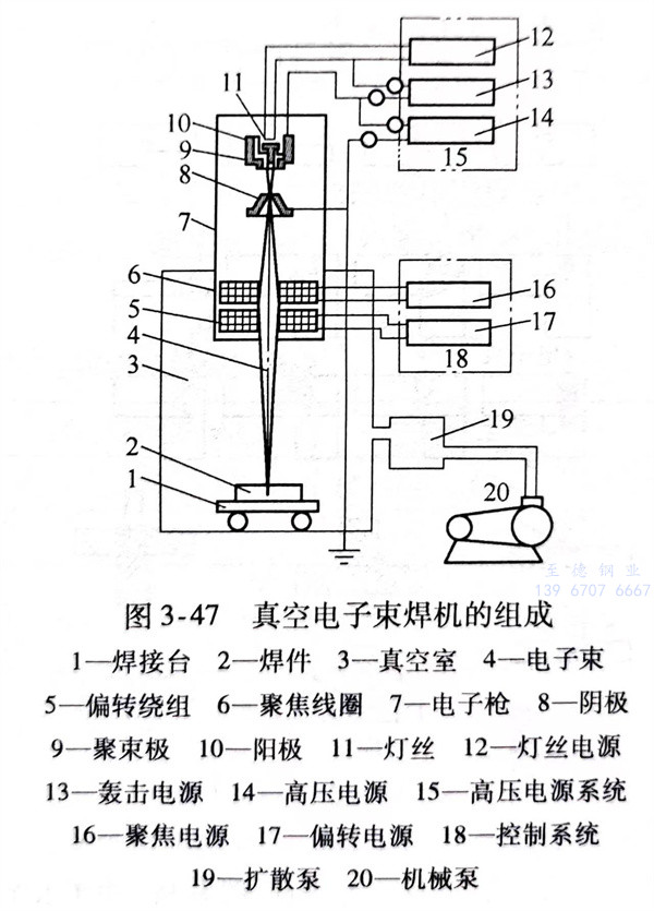 真空(kong)電子束焊機的(de)組成如圖(tu)3-47。電子束焊機的(de)分類見表3-45。不論(lun)焊接環境壓強高低,電子束均(jun)是(shi)在高真空(kong)度條(tiao)件下獲得的(de)。