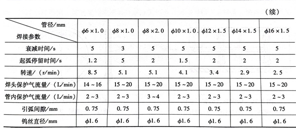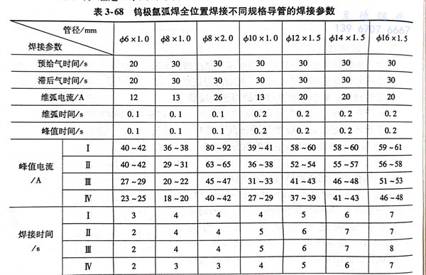 焊接參數對(dui)焊接質量(liang)的(de)(de)影(ying)響頗大,其中峰值電流在每個焊接區(qu)域(導(dao)管固(gu)定不動,焊接分(fen)上、下、左、右4個區(qu))的(de)(de)變(bian)(bian)化(hua)值、引(yin)弧間隙、氣體流量(liang)、鎢極(ji)直徑等參數變(bian)(bian)化(hua)的(de)(de)影(ying)響較(jiao)為突出。經過一系列(lie)的(de)(de)焊接工藝試驗(yan)得出表(biao)3-68的(de)(de)數值。
