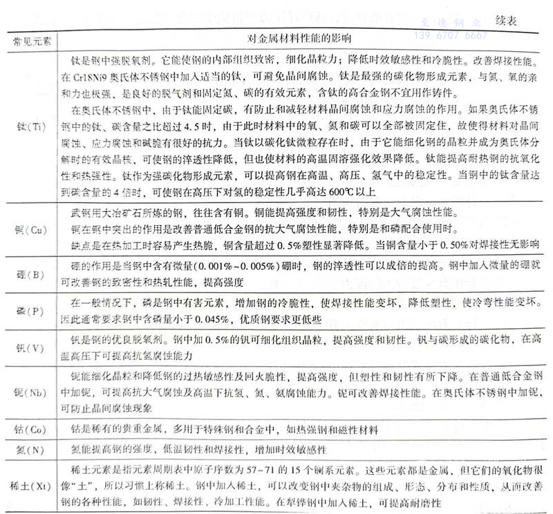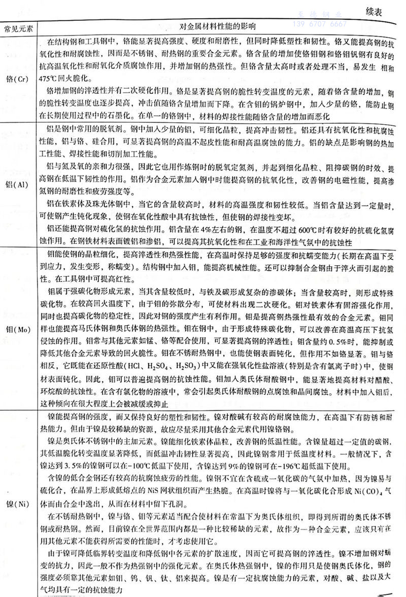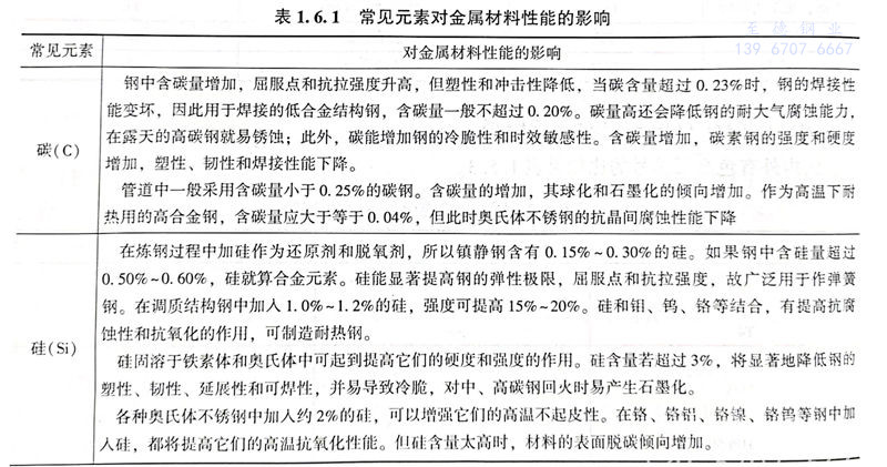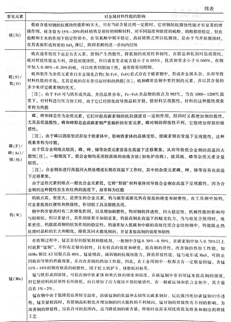 常見元素對金屬(shu)材料性能的影響見表1.6.1。