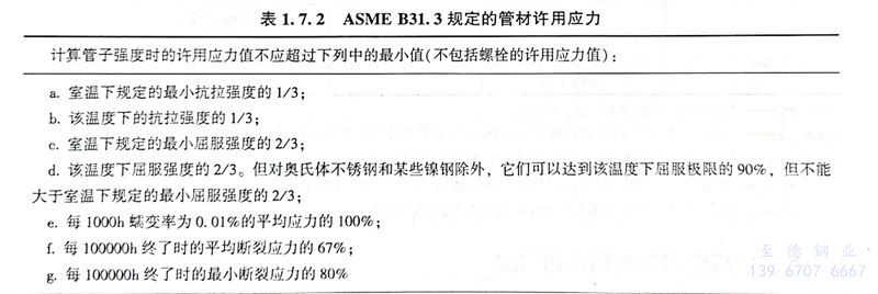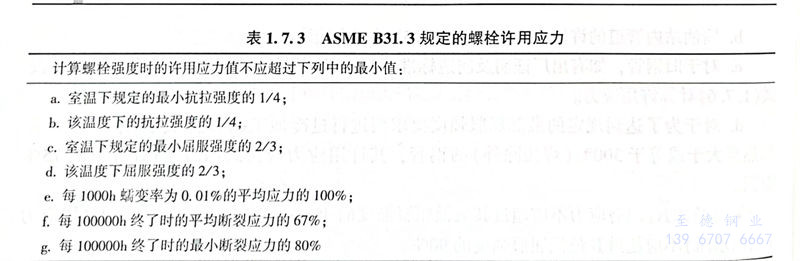 ASME B31.3 規定(ding)的管材許用應力見(jian)表1.7.2,規定(ding)的螺栓許用應力見(jian)表1.7.3。