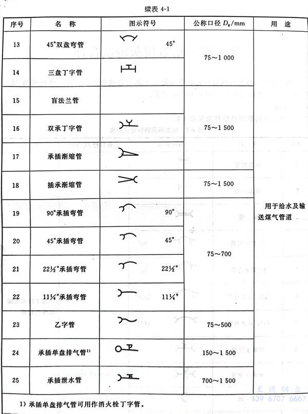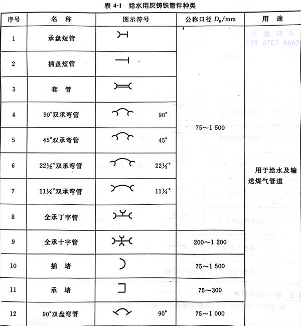 給水用灰鑄鐵管件的(de)種類見表4-1。