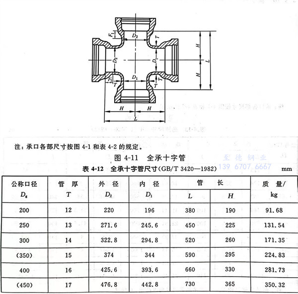 9. 全承十字管型(xing)式(shi)見(jian)圖 4-11 ,尺寸見(jian)表 4-12 。