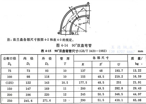 12. 90°雙盤(pan)彎管型式見(jian)圖 4-14 ,尺寸見(jian)表 4-15 。
