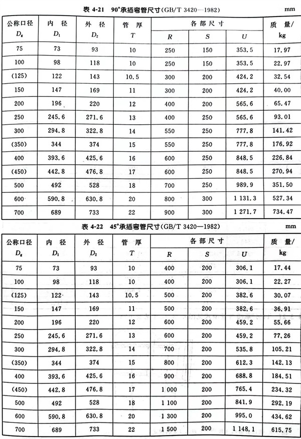 18. 90°承插彎管型式見(jian)圖 4-21 ,尺(chi)寸見(jian)表 4-21。