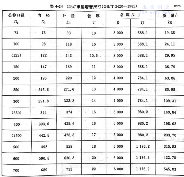 21. 11.25°承(cheng)插彎管型(xing)式(shi)見圖 4-24 ,尺寸見表 4-24 。
