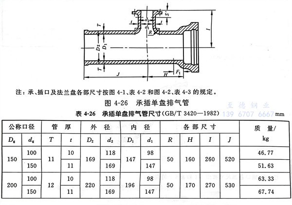 23. 承插單盤排(pai)氣管型式見圖 4-26 ,尺(chi)寸見表 4-26 。