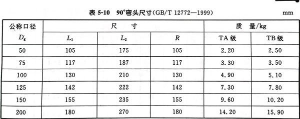 90°彎頭型式(shi)見(jian)(jian)圖 5-10 ,尺(chi)寸(cun)見(jian)(jian)表 5-10 。