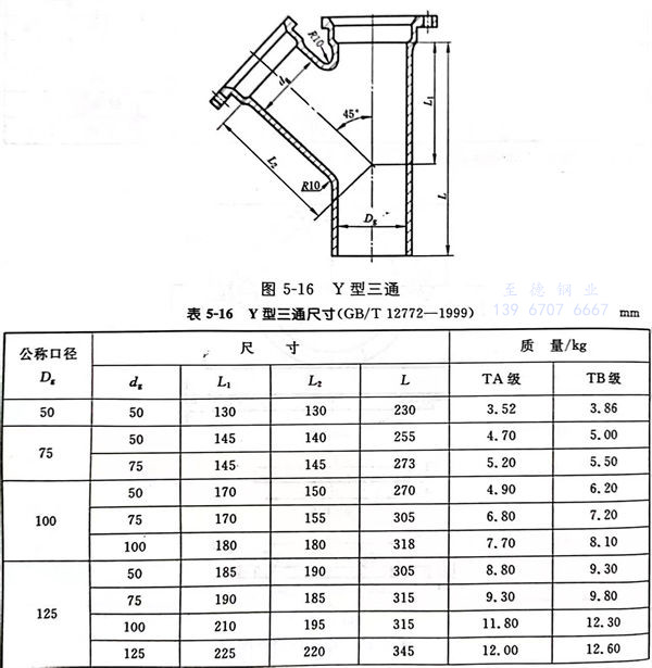 Y型三通型式見圖 5-16,尺寸見表(biao) 5-16。