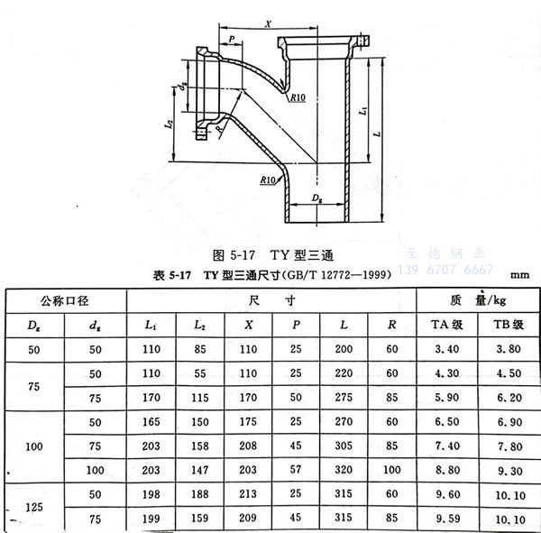TY型(xing)三通型(xing)式見圖 5-17,尺寸見表 5-17。