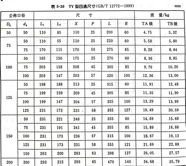 TY型四通型式見圖 5-20,尺(chi)寸見表 5-20。