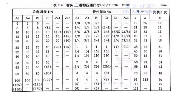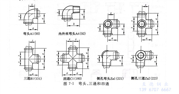 彎(wan)頭、三通和(he)四通型(xing)式見圖 7-1 ,尺寸見表 7-2 。