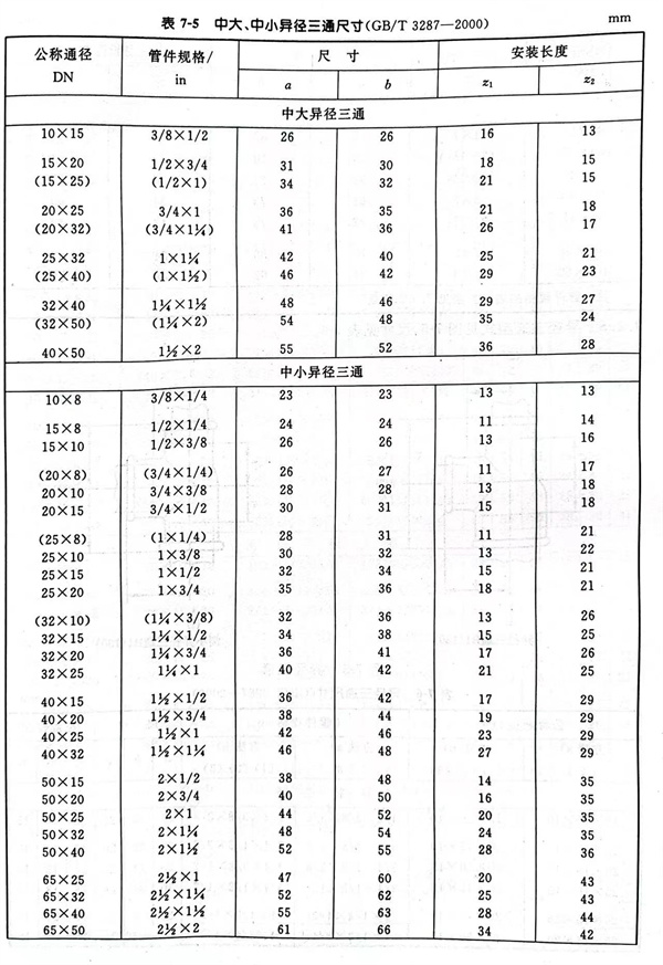 異徑四通型式見(jian)圖 7-6 ,尺寸見(jian)表 7-7 。