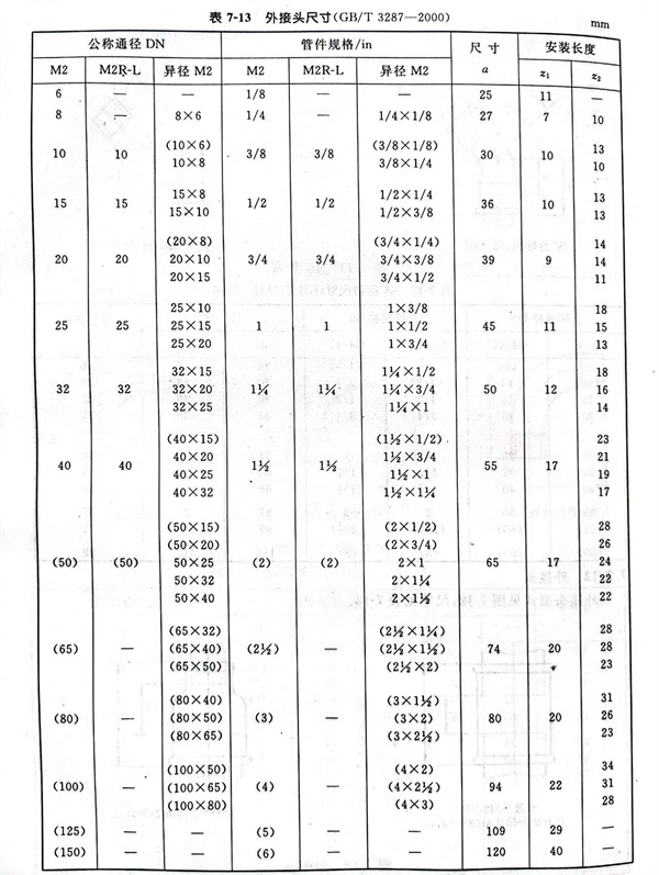內外絲接頭(tou)型式見(jian)圖(tu) 7-13 ,尺寸見(jian)表 7-14 。