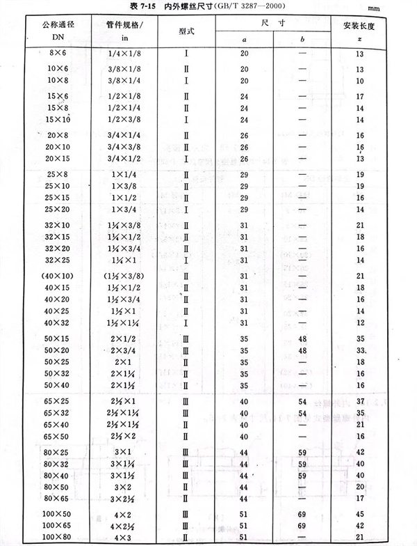 內外螺絲型式見圖 7-14 ,尺寸(cun)見表 7-15 。