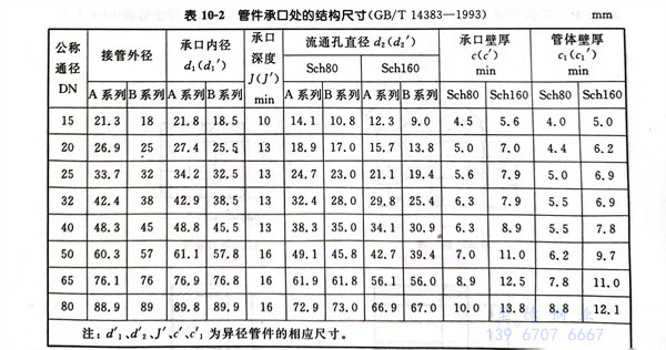 在(zai)不違(wei)背GB/T 14383-1993《鍛鋼制承插(cha)焊管(guan)件》標準(zhun)的有關尺寸(cun)(cun)規定(ding)時(shi),經(jing)供需雙(shuang)方協商同意,B系列管(guan)件的外形(xing)尺寸(cun)(cun)允(yun)許采用相同通徑和等級的A系列管(guan)件的外形(xing)尺寸(cun)(cun)。