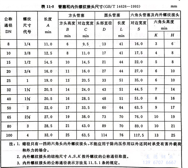 管(guan)塞和(he)內外螺紋接頭型式見(jian)圖11-3,尺(chi)寸見(jian)表11-5。