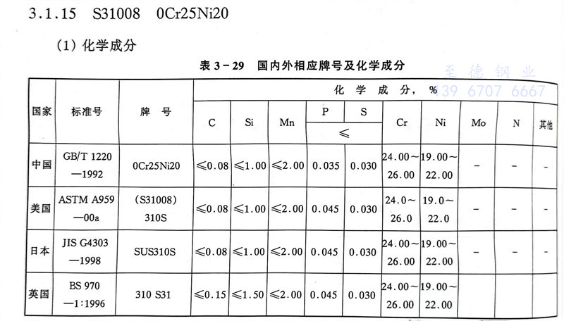 S31008 0Cr25Ni20 不(bu)銹(xiu)鋼主要特性和用途
