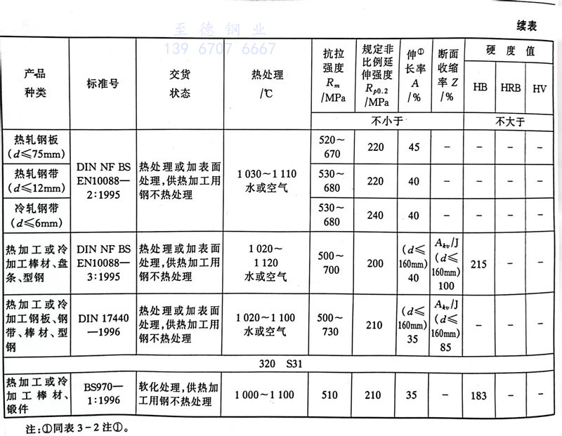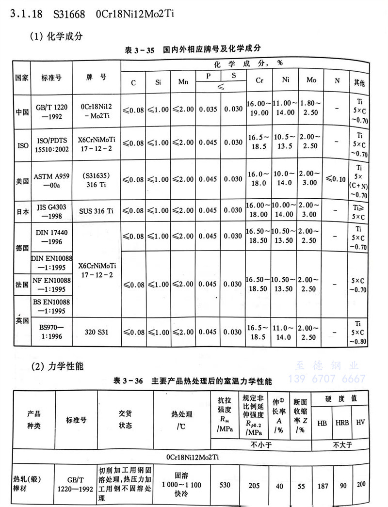 S31668 0Cr18Ni12Mo2Ti 不銹鋼主要特性和用途(tu)
