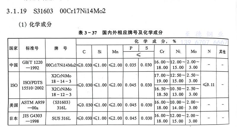 S31603 00Cr17Ni14Mo2 不銹鋼主(zhu)要特性和用(yong)途(tu)