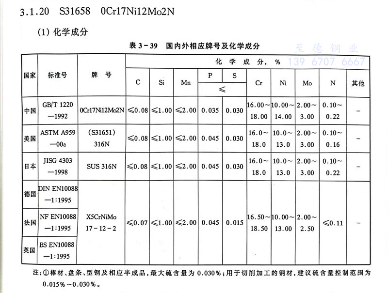 S31658 0Cr17Ni12Mo2N 不銹(xiu)鋼主要特性和用(yong)途