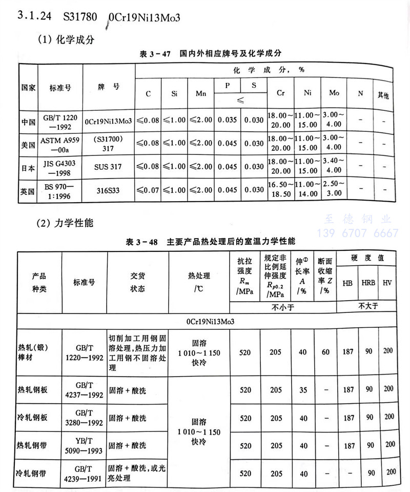 S31780 0Cr19Ni13Mo3 不銹鋼(gang)主要特性和用途