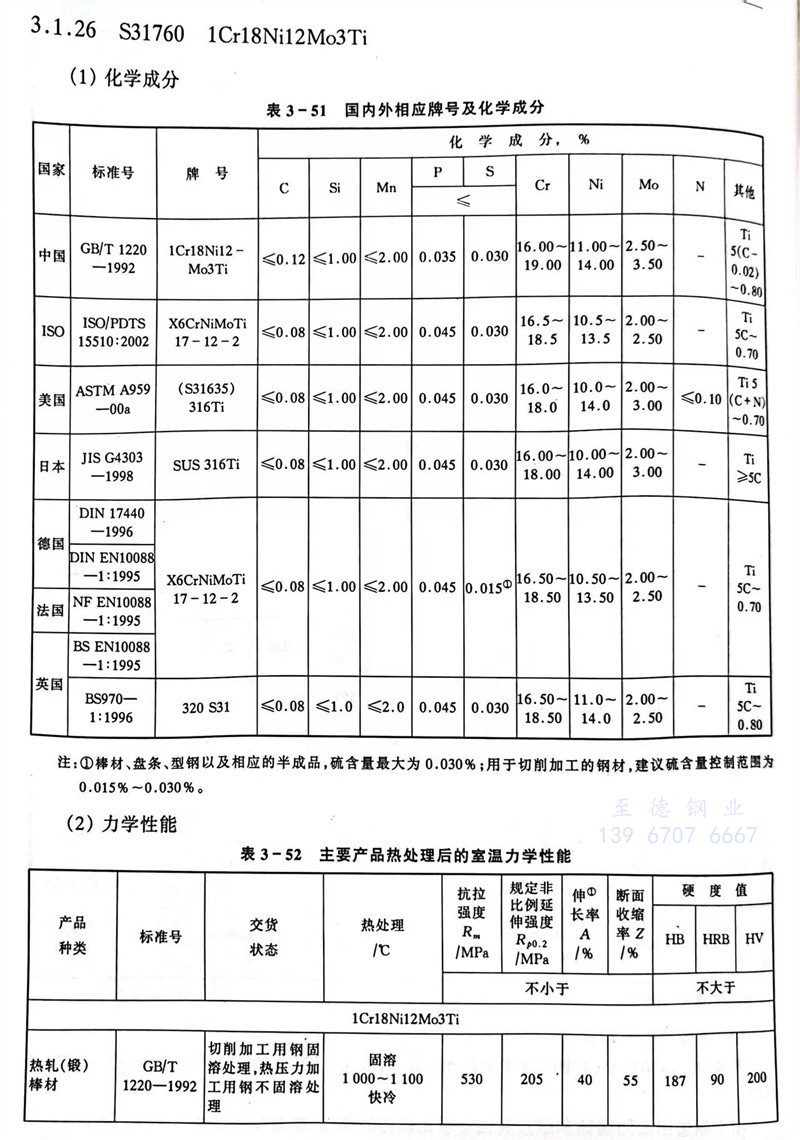 S31760 1Cr18Ni12Mo3Ti 不(bu)銹鋼主要(yao)特(te)性和用途
