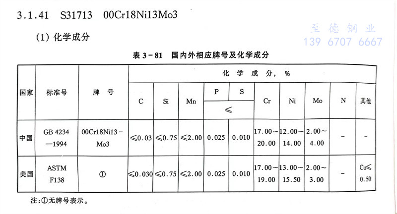 S31713 00Cr18Ni13Mo3 不銹鋼主要特性(xing)和用途(tu)