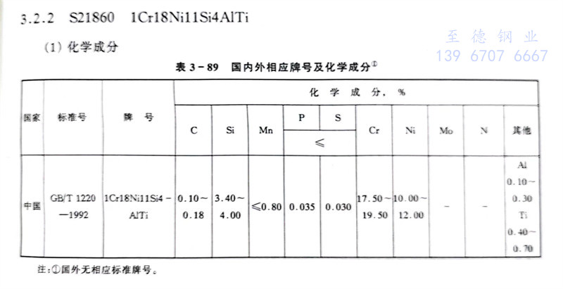 S21860 1Cr18Ni11Si4AlTi 不(bu)銹鋼主要特(te)性和(he)用途