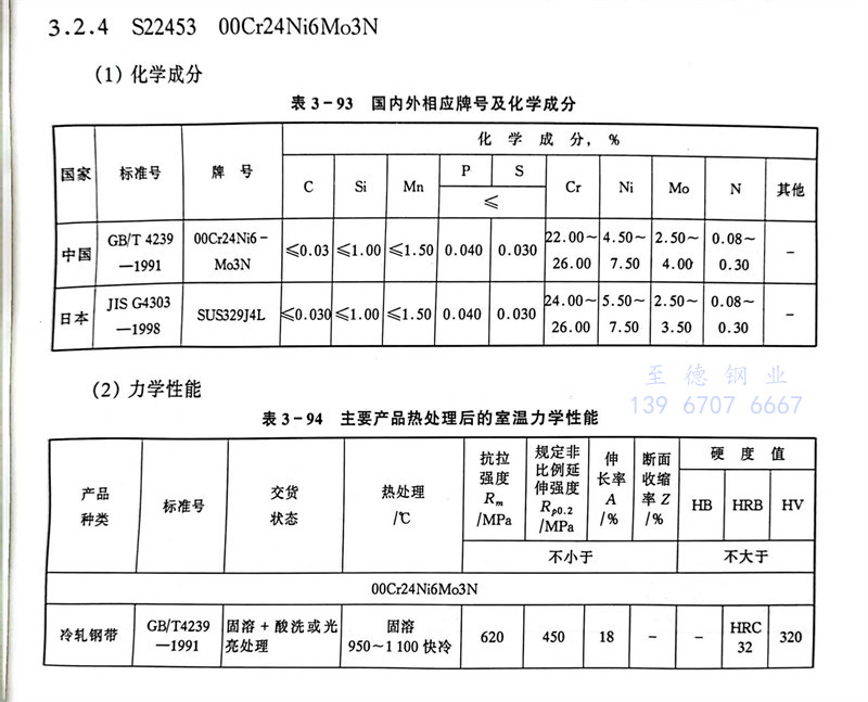 S22453 00Cr24Ni6Mo3N 不(bu)銹鋼主要特性和(he)用(yong)途