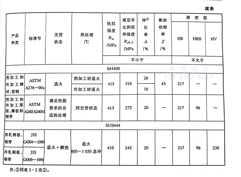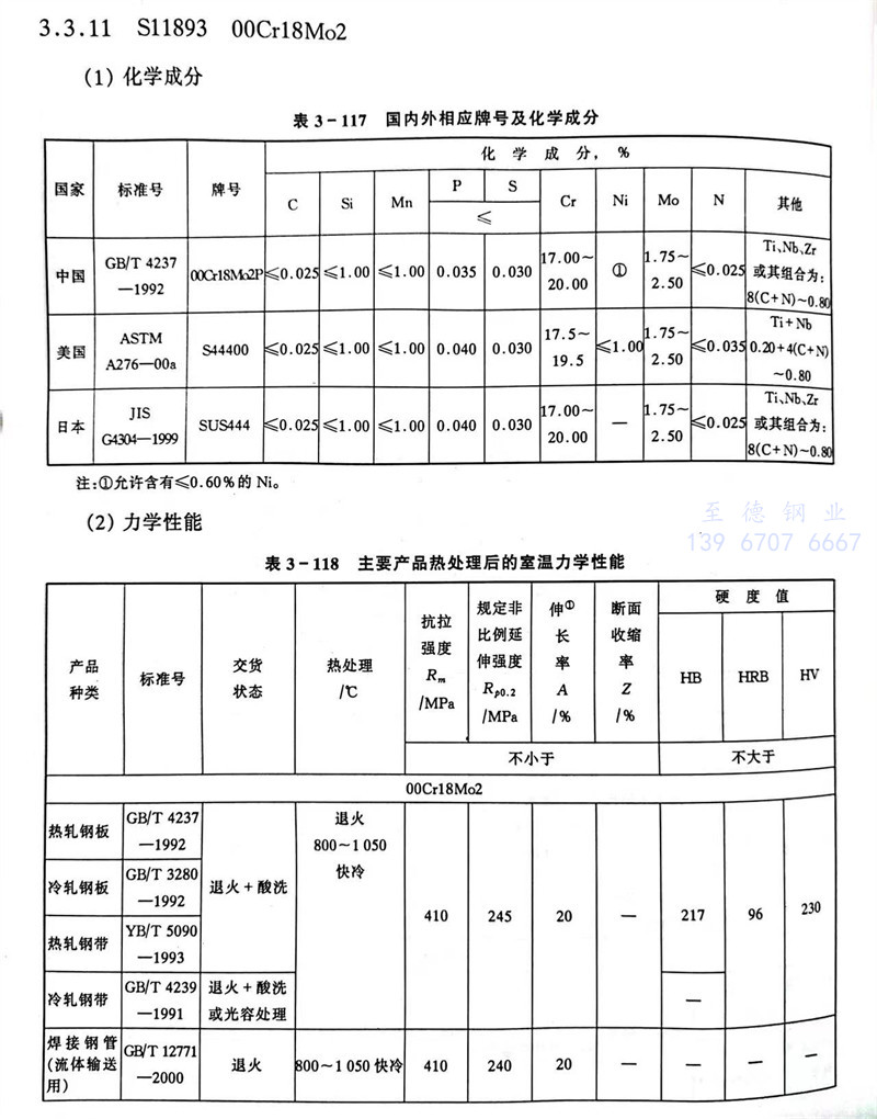 S11893 00Cr18Mo2 不銹(xiu)鋼主要特性和用途