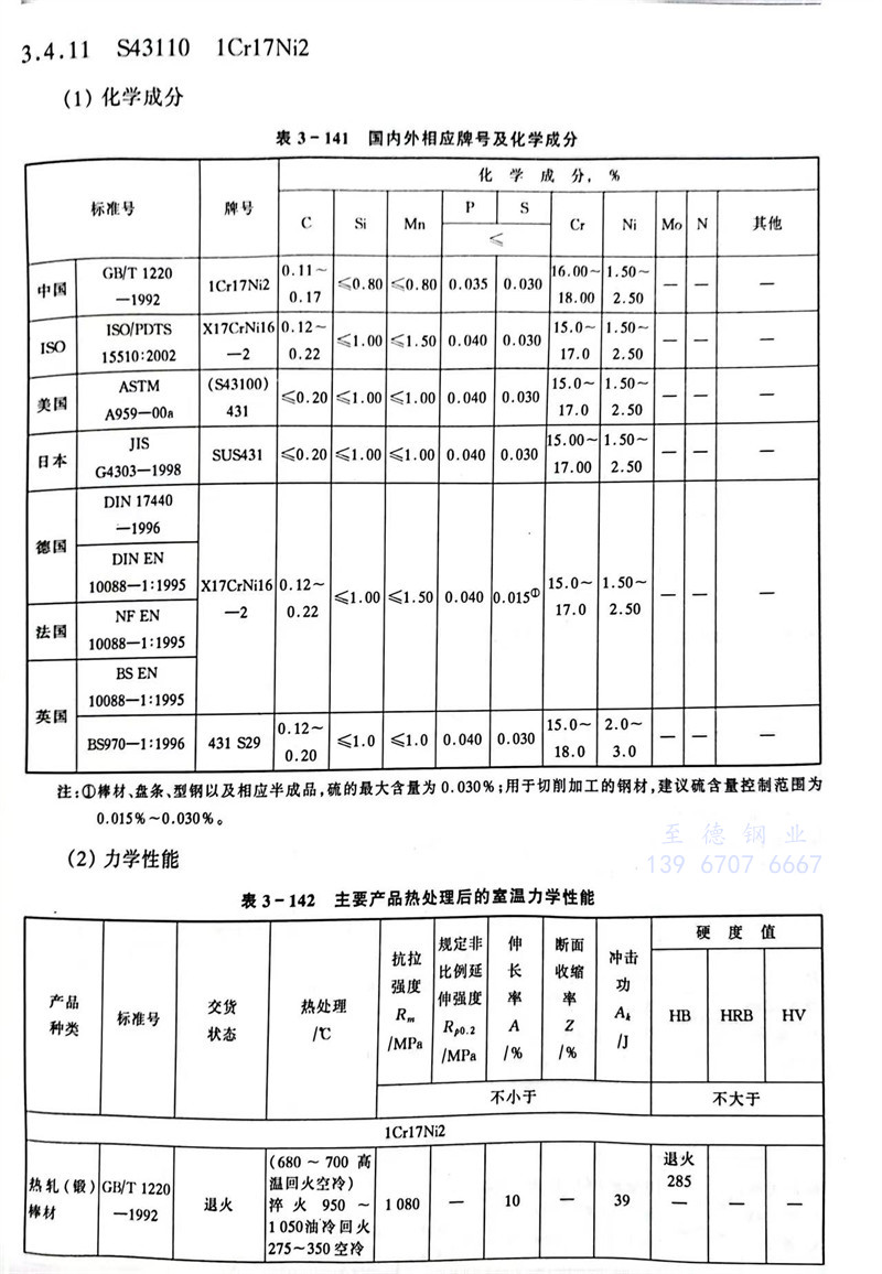 S43110 1Cr17Ni2 不銹鋼主要(yao)特性和用途