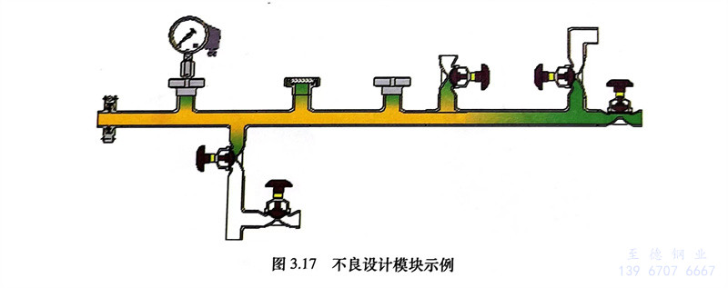 出于同樣的(de)(de)原因,兩條管道交叉(cha)時也(ye)要考慮合理的(de)(de)布(bu)局(圖3.13)。不(bu)銹(xiu)鋼管道的(de)(de)排布(bu)方式應確保食品或(huo)清(qing)潔劑能夠從(cong)管道系統(tong)中排出。