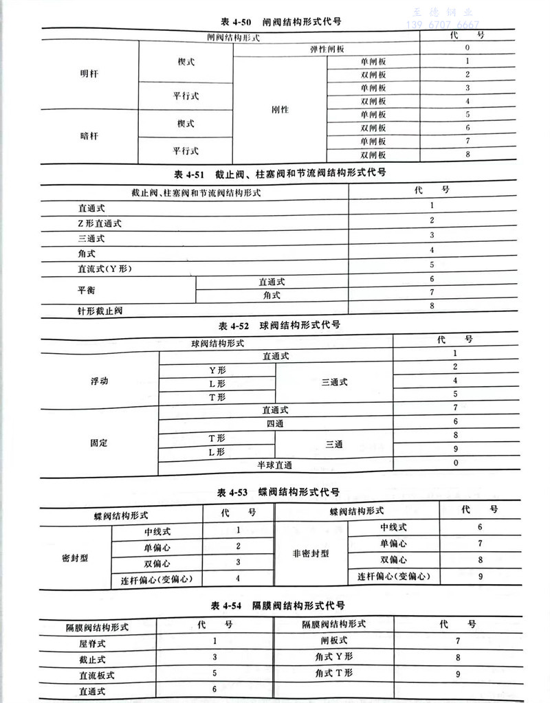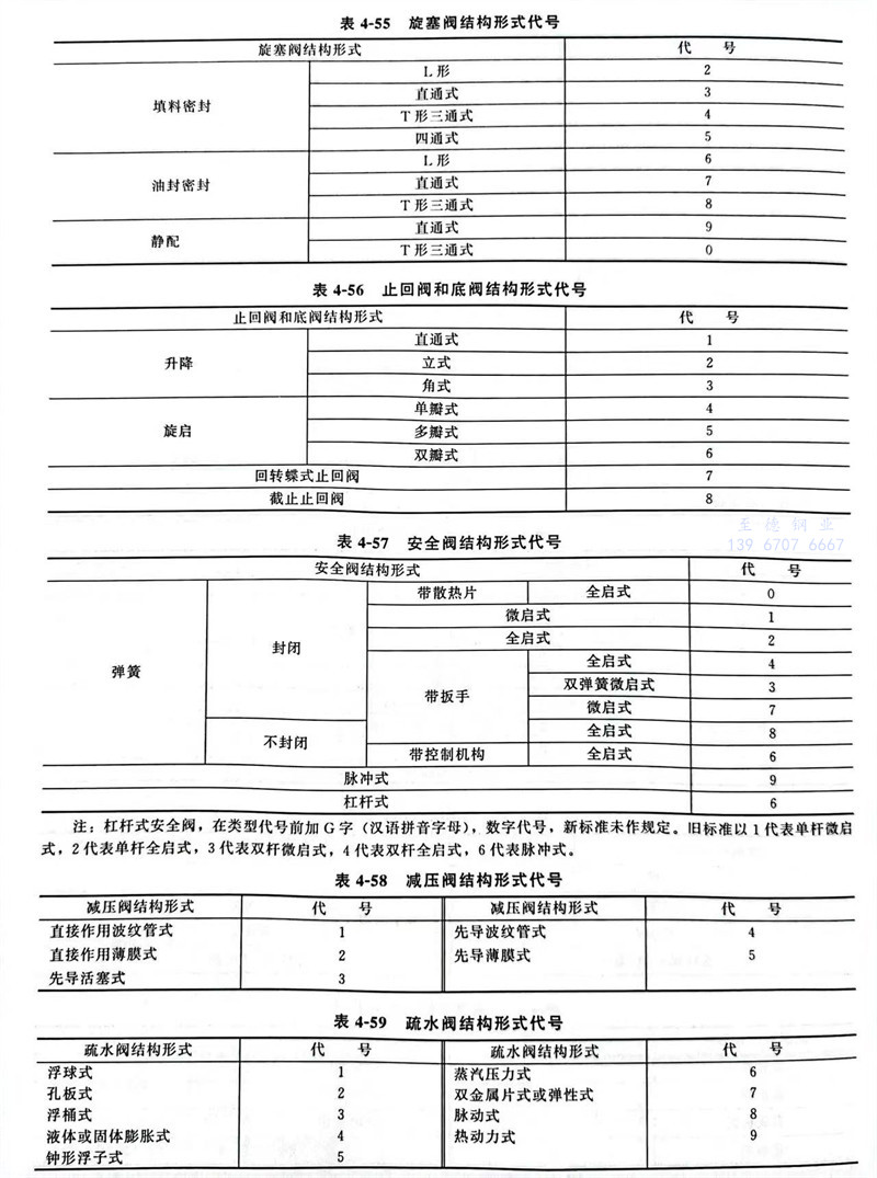 第三單元是閥門的連接形式代號,用阿拉伯數字表示(表4-49)。