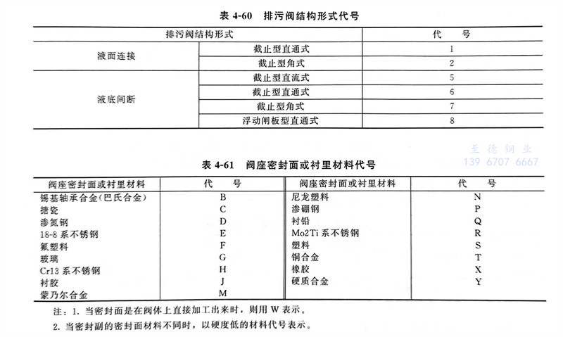 第五單元是閥座密封面或(huo)襯里材(cai)料代號,用字(zi)母表(biao)示(表(biao)4-61)。