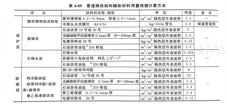 管(guan)道隔熱結構輔(fu)助(zhu)材料用量快捷(jie)計算方法見表4-89。
