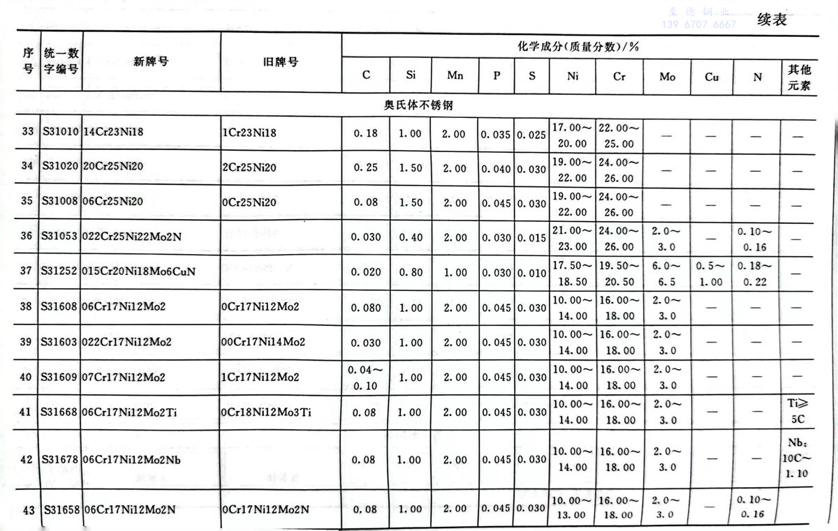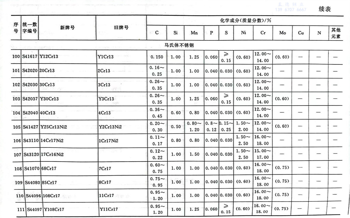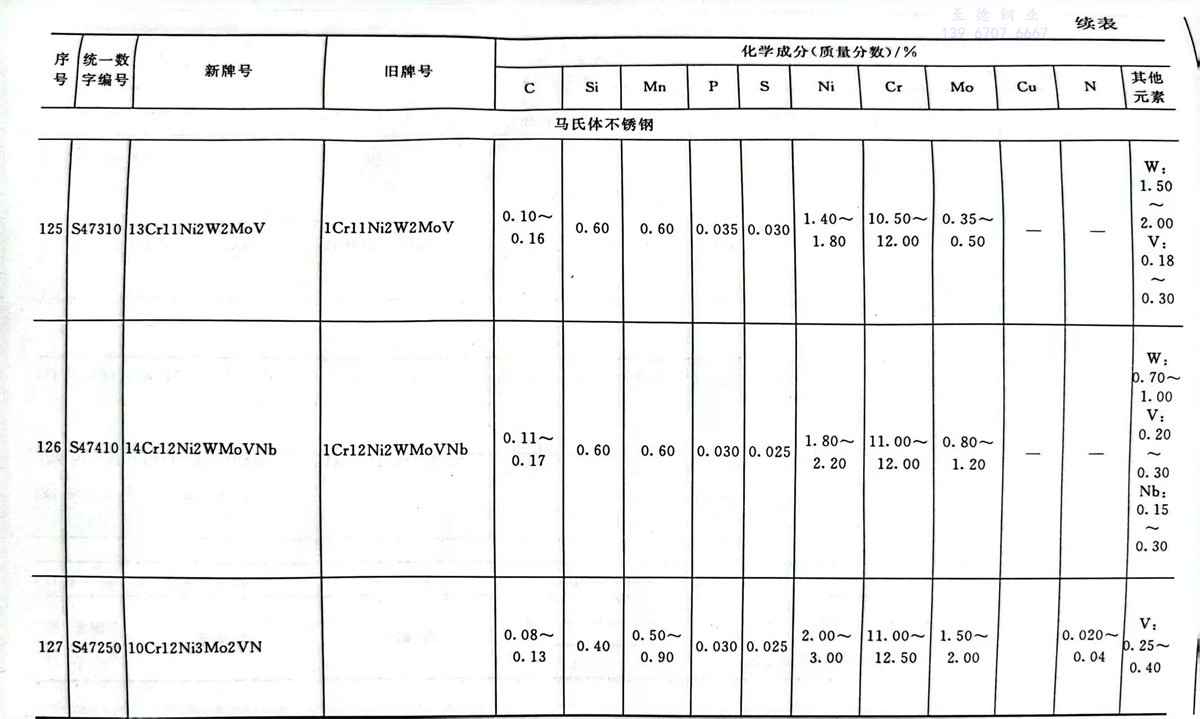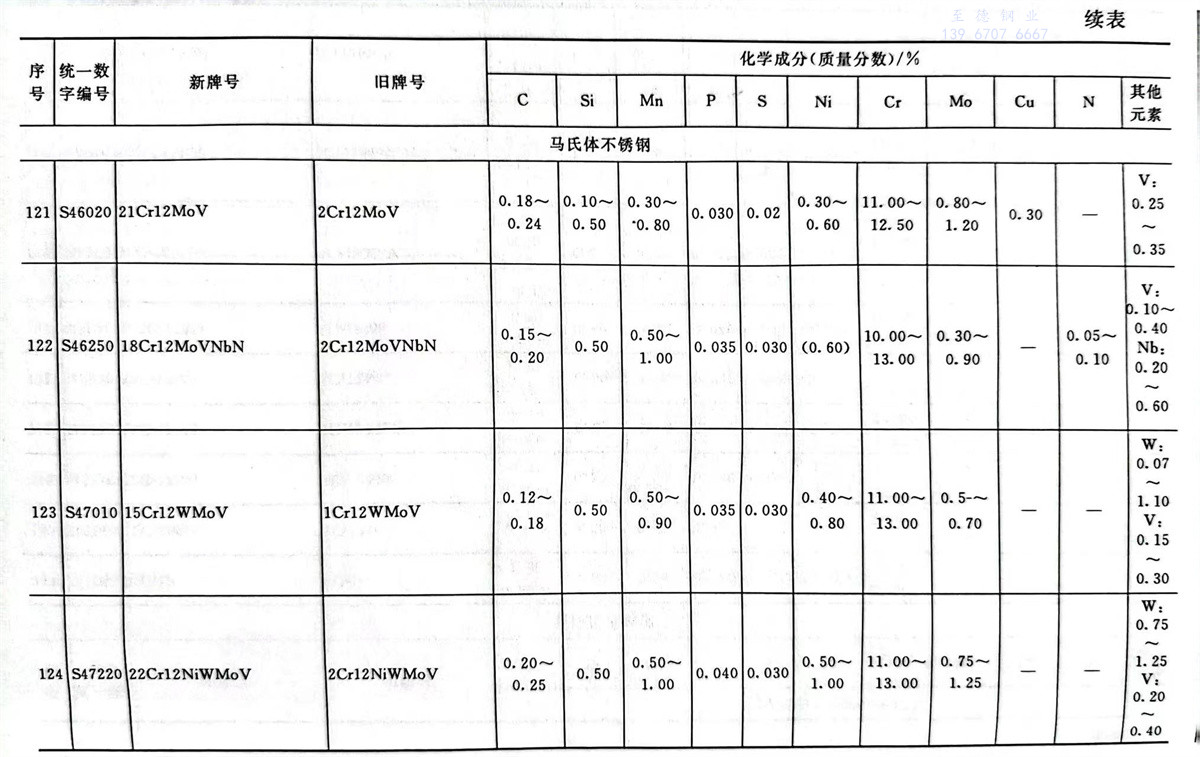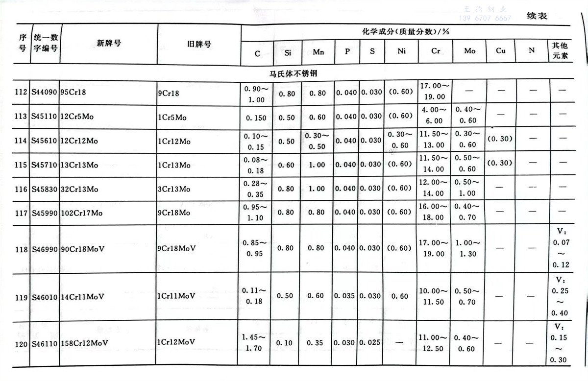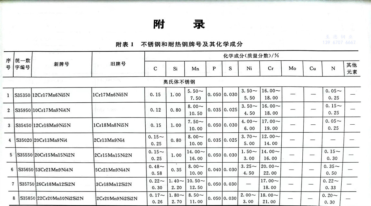 不(bu)銹鋼和耐熱鋼牌號(hao)及(ji)其化學成分表