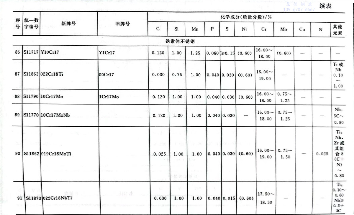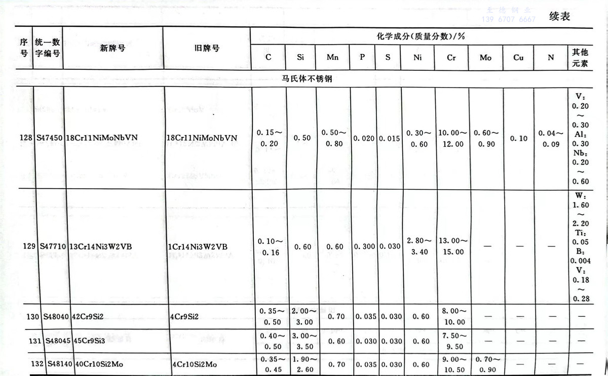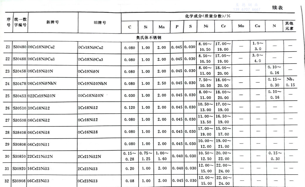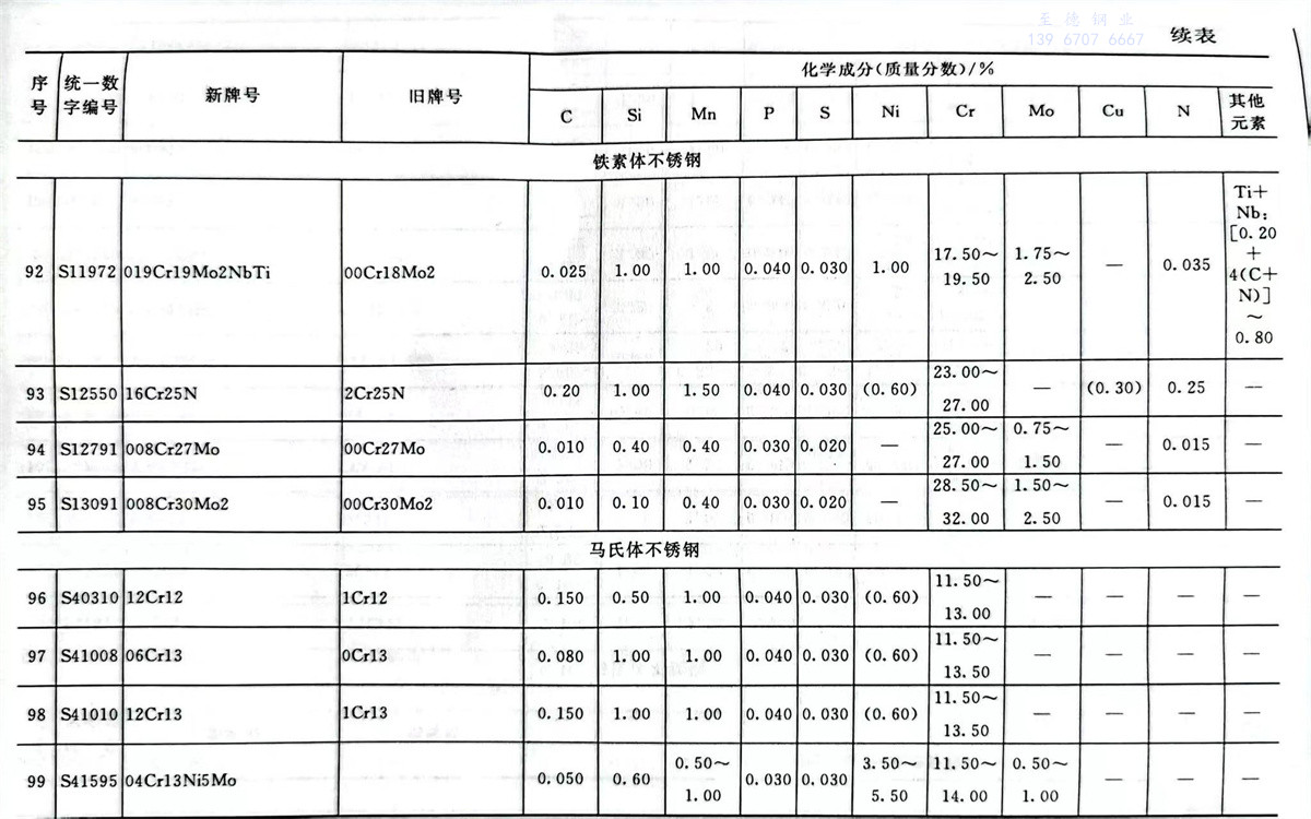 不銹鋼和耐熱鋼牌號及其化學成分表
