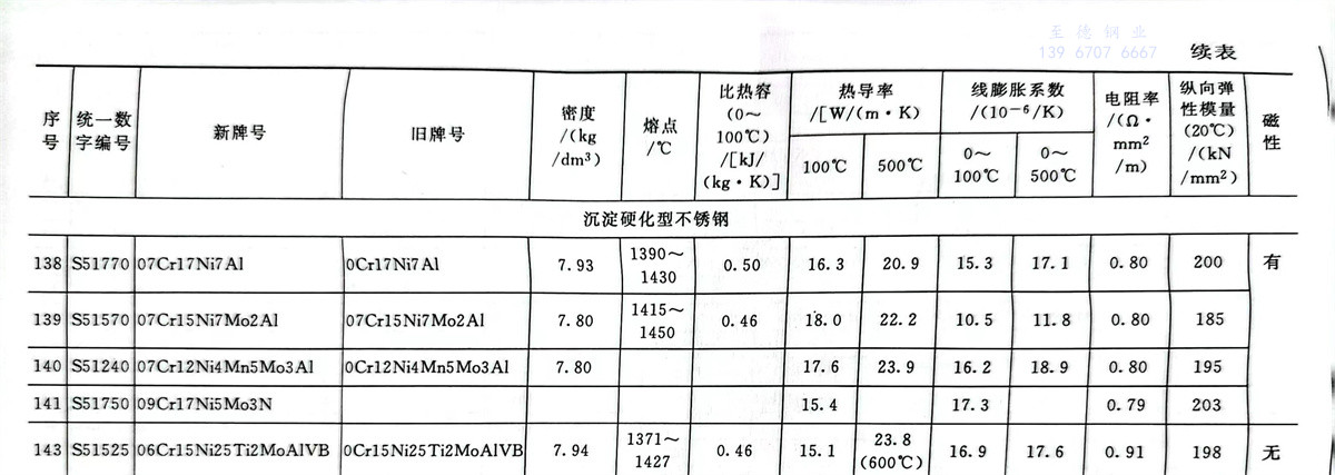 不銹鋼和耐熱鋼牌號的物理性(xing)能(neng)參數表