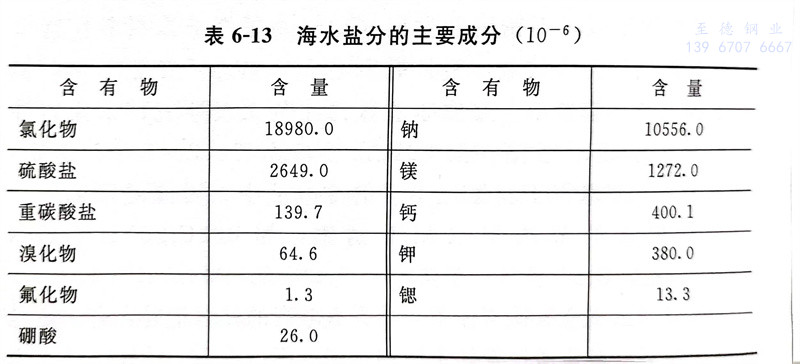 海(hai)水的鹽(yan)分濃(nong)度(du)依海(hai)域(yu)的不同而不同,遠(yuan)洋海(hai)水中的鹽(yan)分為3.2%~3.6%,其大(da)致組成(cheng)見表6-13。
