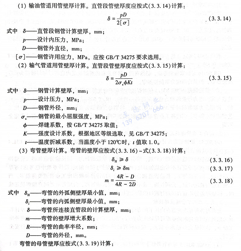 (1)輸油(you)管(guan)道用管(guan)壁厚計算。直管(guan)段管(guan)壁厚度應按式(3.3.14)計算: