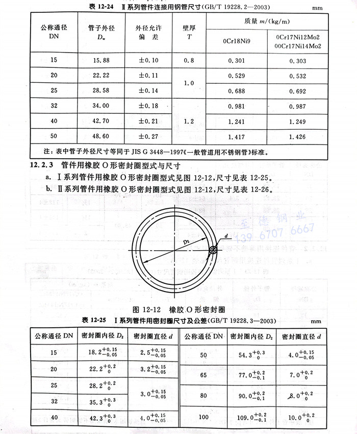 a. Ⅰ系列管件用(yong)橡膠O形密封圈公差見表12-25。