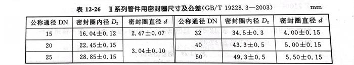 b. Ⅱ系列管件用橡膠(jiao)O形密封圈公差見表(biao)12-26。