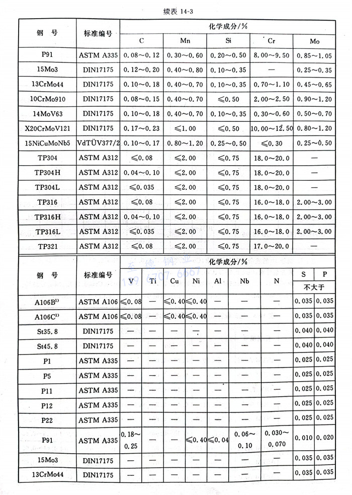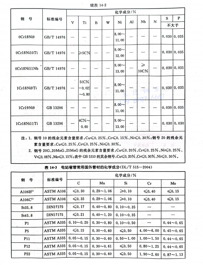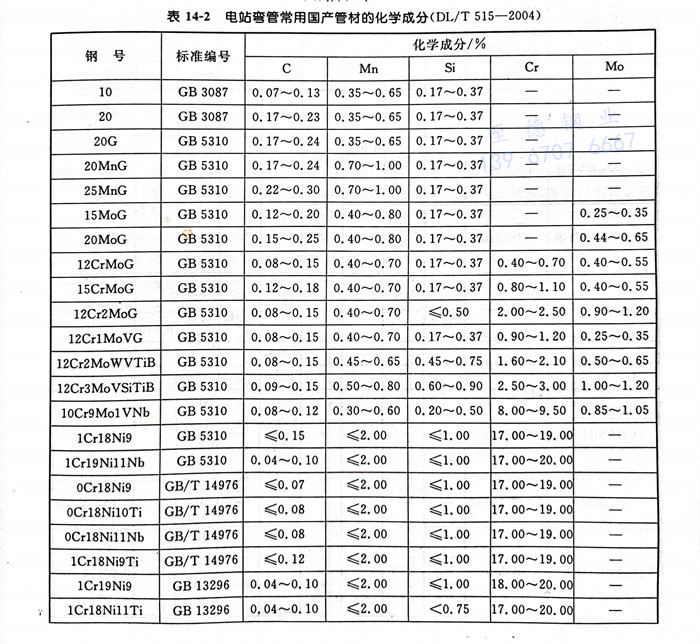b. 電站彎管常用(yong)國外管材的化(hua)學(xue)成分見表14-3。