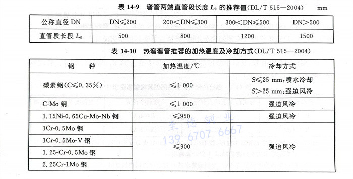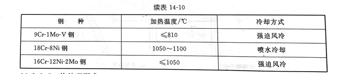 d.熱彎彎管推薦的加熱溫度及冷(leng)卻方式見(jian)表14-10。