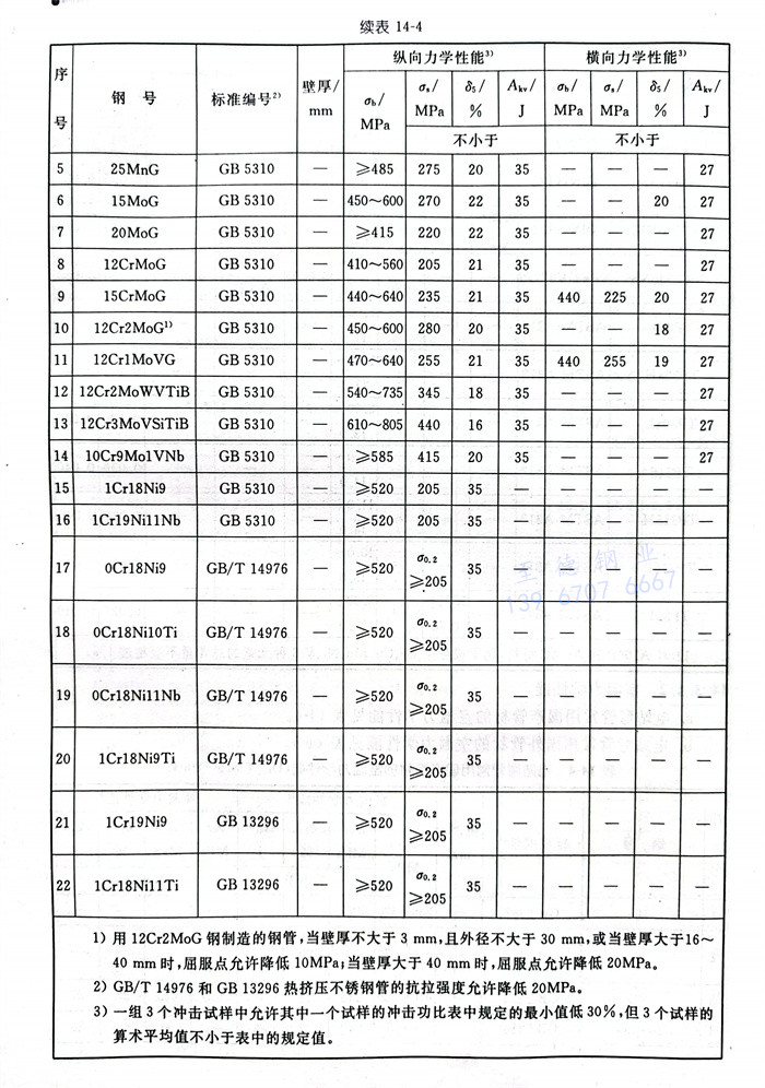 不(bu)銹鋼(gang)(gang)管(guan)材料應(ying)(ying)按(an)質量合(he)(he)(he)格證書或質量保證書進(jin)(jin)行(xing)(xing)質量驗(yan)收(shou)。質量合(he)(he)(he)格證書或質量保證書應(ying)(ying)標(biao)明鋼(gang)(gang)號、化學(xue)(xue)成分(fen)、力學(xue)(xue)性(xing)(xing)能(常用管(guan)材化學(xue)(xue)成分(fen)及(ji)分(fen)學(xue)(xue)性(xing)(xing)能見(jian)表14-2~表14-5),以及(ji)必要的(de)熱處理工藝等。數據(ju)不(bu)全的(de)應(ying)(ying)進(jin)(jin)行(xing)(xing)補(bu)檢,補(bu)檢的(de)方法、范圍、數量應(ying)(ying)符合(he)(he)(he)國家標(biao)準或行(xing)(xing)業(ye)標(biao)準。進(jin)(jin)口鋼(gang)(gang)管(guan)除應(ying)(ying)符合(he)(he)(he)合(he)(he)(he)同規定(ding)的(de)有(you)關國家的(de)技術標(biao)準外,還應(ying)(ying)有(you)入境貨物檢驗(yan)檢疫證明。