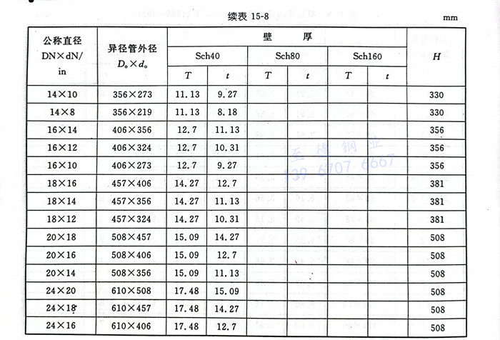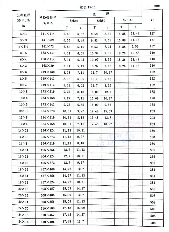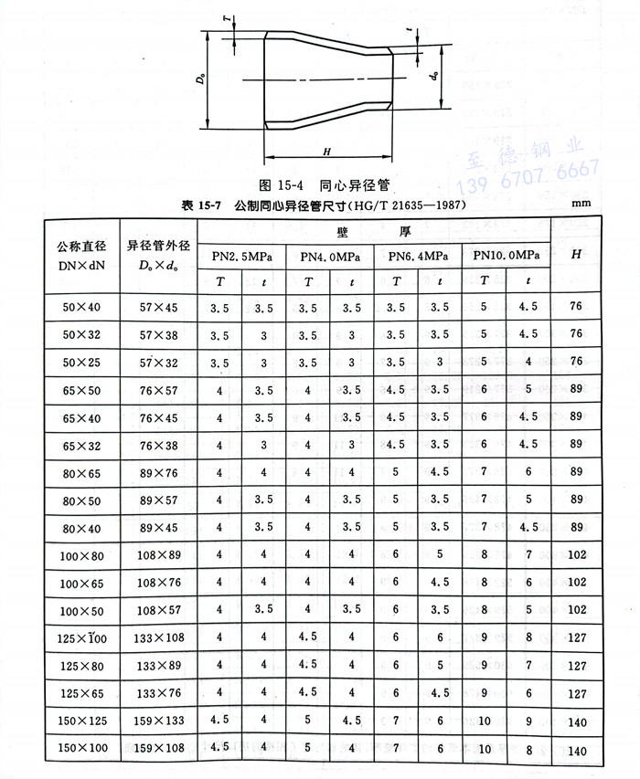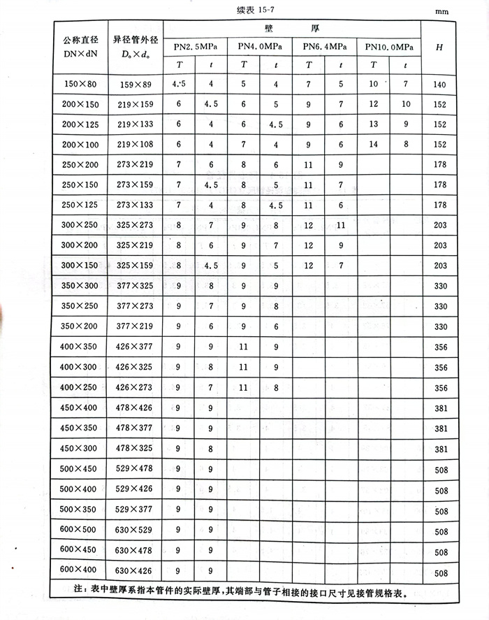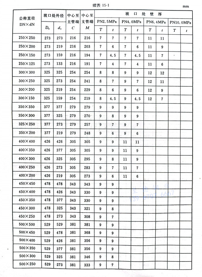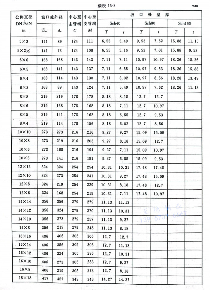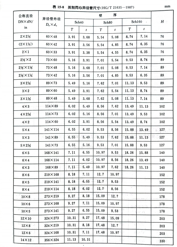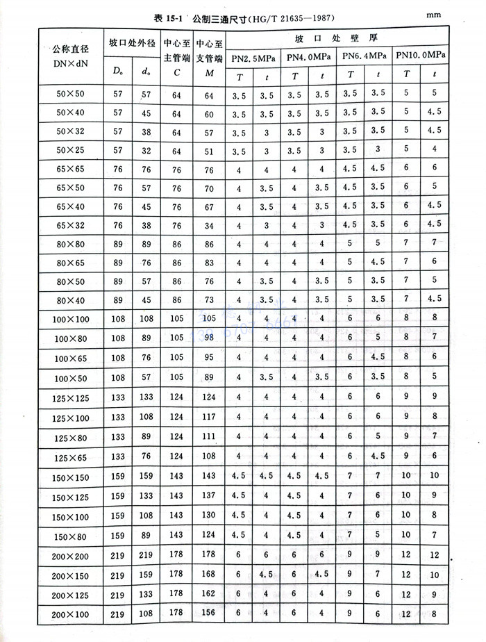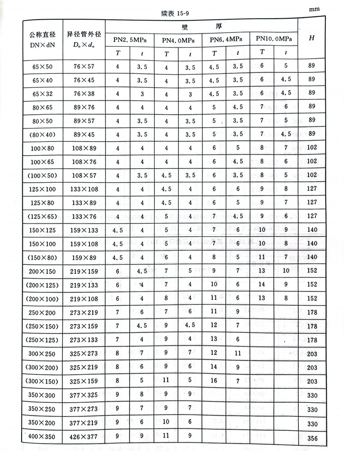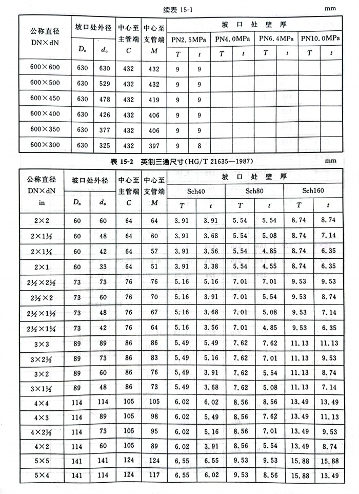 同(tong)心(xin)異徑管(guan)型式見圖15-4,公制(zhi)三(san)通尺寸見表15-7;英制(zhi)三(san)通尺寸見表15-8。